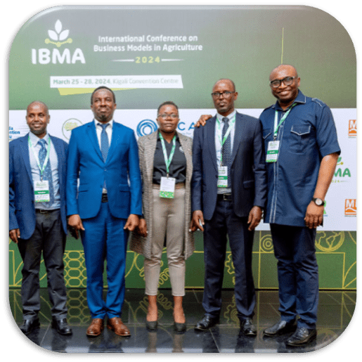 Dr Ikechi Agbugba (Associate Professor of Agricultural Marketing, Co-founder Africa Organisation of Technology in Agriculture & Chairperson, Scientific Committee of IBMA); with stakeholders of Transformation such as the Prof Kayihura Didas (Vice Chancellor, University of Rwanda); Dr Patrick Karangwa (Director General of Agriculture Modernisation); Prof Francois Naramabuye (Agronomist Uni of Rwanda & Co-Chair, Scientific Committee, IBMA); and Dr Judith Uwihirwe (Rwanda Institute of Conservation Agriculture (RICA)